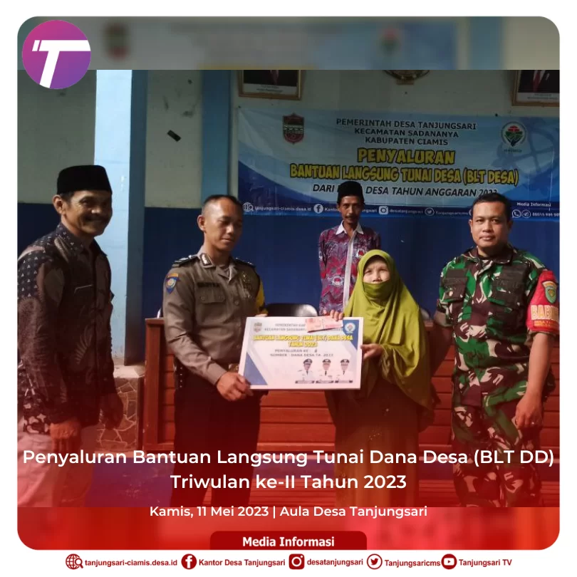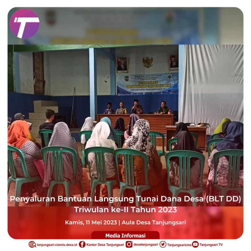Penyaluran BLT Dana Desa ini dimulai pukul 10.00 WIB di Aula Desa Tanjungsari dimana dihadiri pula oleh Kapospol Ciamis dan Babinsa Desa Tanjungsari menyaksikan penyaluran BLT Dana Desa Triwulan ke II ke KPM secara tunai dan langsung.